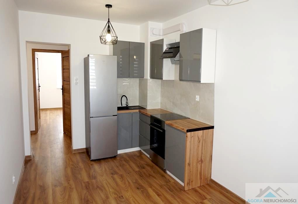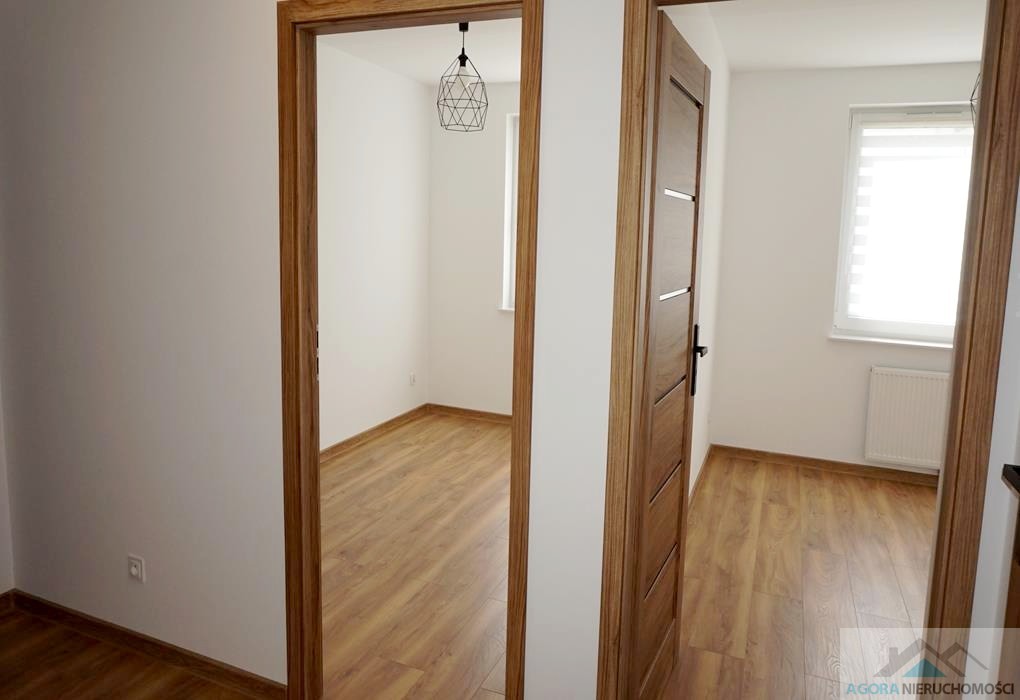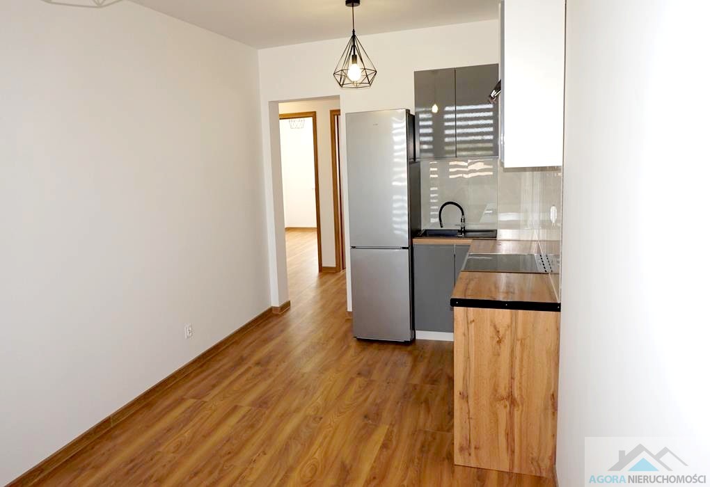 Mieszkanie składa się z salonu z aneksem kuchennym, dwóch pokoi niezależnych, łazienki z wc. Aneks wyposażony jest w meble, płytę indukcyjną, kuchnię elektryczną, lodówkę.